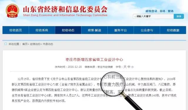 根據(jù)《山東省省級工業(yè)設(shè)計中心管理辦法》(魯經(jīng)信產(chǎn)﹝2014﹞121號),經(jīng)各市經(jīng)信委現(xiàn)場審核及專家評審,山東康力醫(yī)療器械科技有限公司被山東省經(jīng)濟(jì)與信息化委員會認(rèn)定為省級工業(yè)設(shè)計中心。